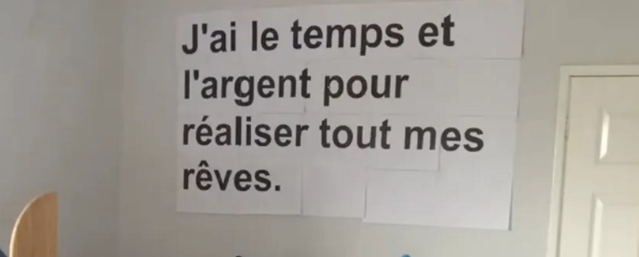 My room at the time, with a huge sign on the wall that says “I have the time and money to realise my dreams” - check ;)